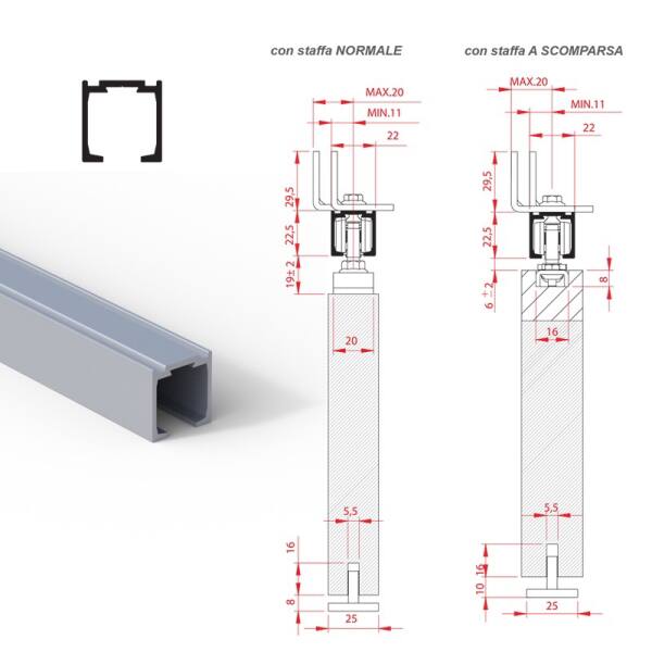 BINARIO ALL. MM. 22,5X22 MT.4 KG.30 ANOD. ARG.