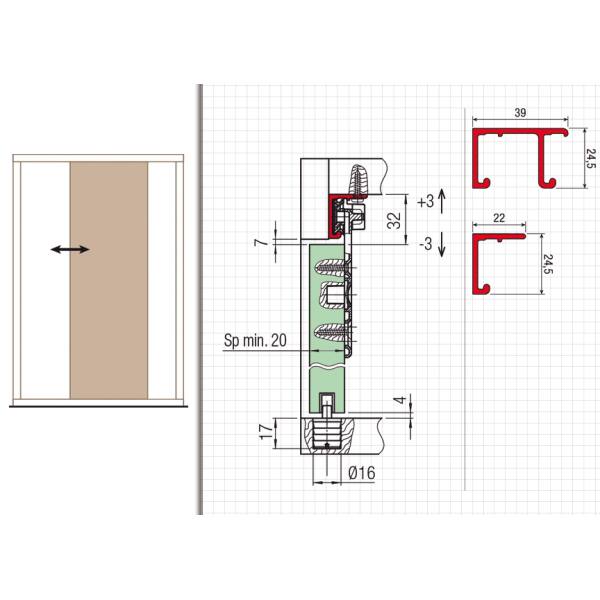 BINARIO SUP.ALLUMINIO SINGOLO DA MT.3