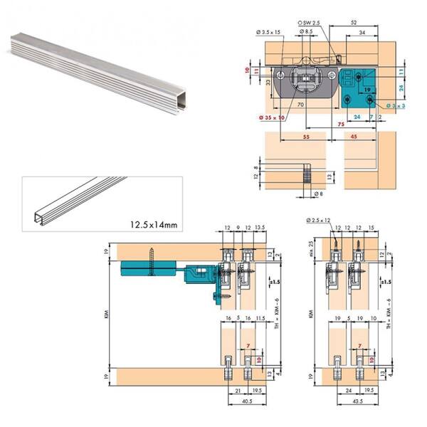 Binario superiore in alluminio 2500 mm.