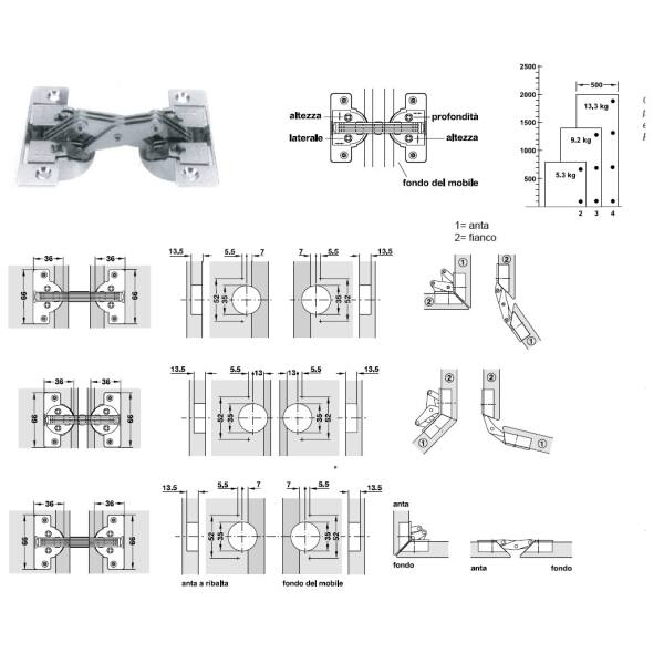 Cerniera angoli smussati a 45° per apertura 90° anta ribalta