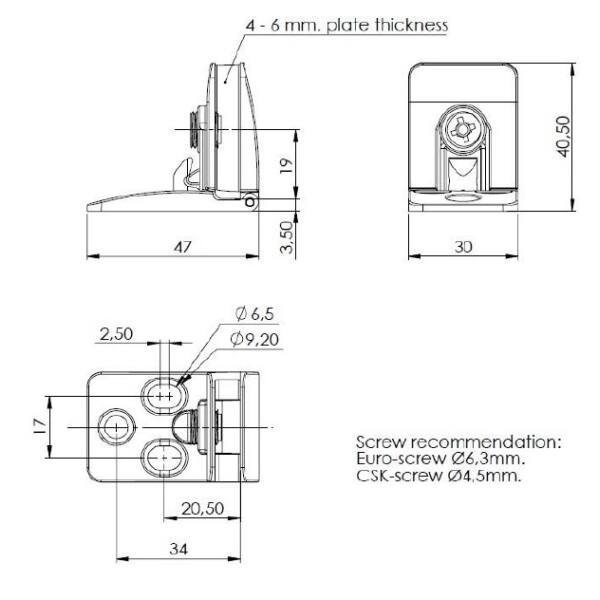 Cerniera per vetro a scatto cromo lucido