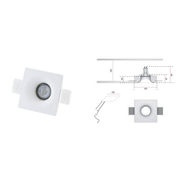 Faretto in gesso a scomparsa quadro 120X120 mm.