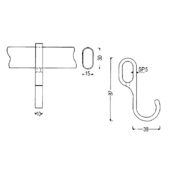 Gancio appendiabiti per tubo ovale 15x30 mm cromo