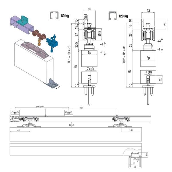 KIT SCORREVOLE 2 FERMI AMMORT. KG.80-120