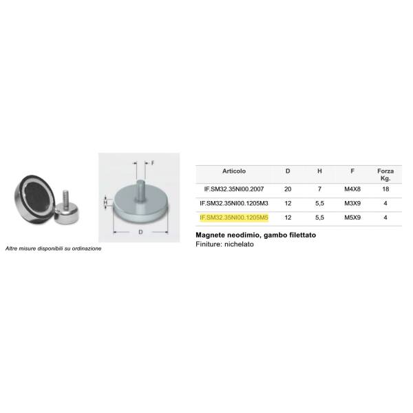 MAGNETE DIAMETRO 12 X SP.5,5 FILETTO M5X9