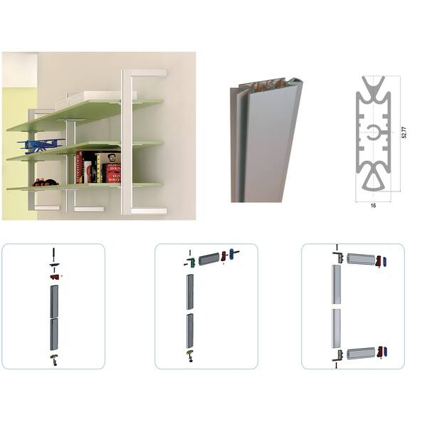 Montante VERTICAL SLIM 16X53 mm. alluminio anodizzato argento