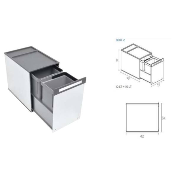 Pattumiera differenziata BOX 2 secchi 270x360x420 mm. acciaio INOX lucido