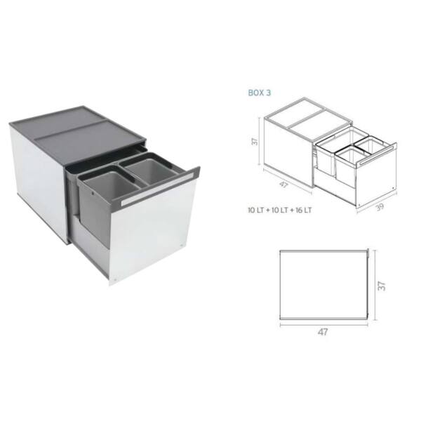 Pattumiera differenziata BOX 3 secchi 390x360x470 mm. acciaio INOX lucido