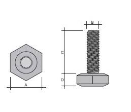 Piedino esagonale m 10x25 mm.