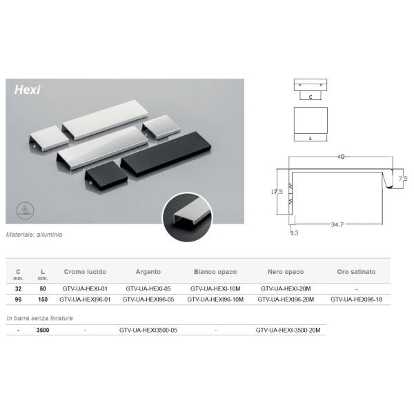 PROFILO MANIGLIA HEXI MM.3500 NERO OPACO
