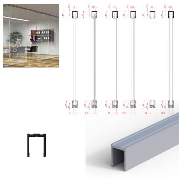 Profilo per anta fissa a soffitto alluminio anodizzato 6 mt.